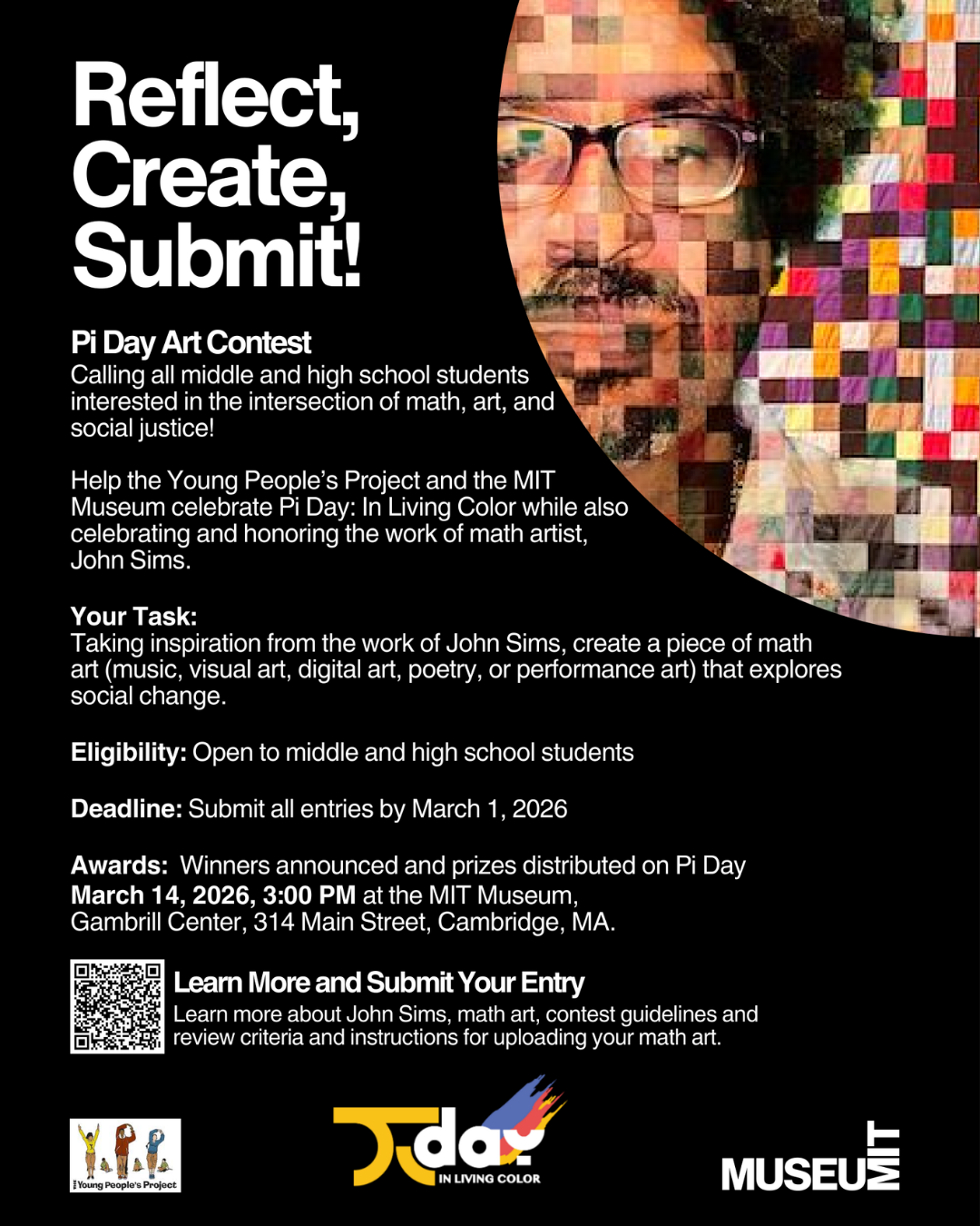 Winners announced and prizes distributed on Pi Day March 14, 2026, 3:00 PM at the MIT Museum, Gambrill Center, 314 Main Street, Cambridge, MA.